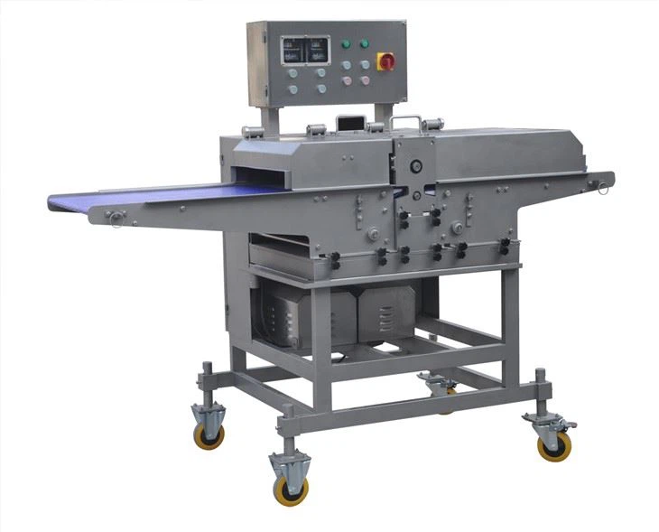Gaļas sloksnes griešanas mašīna ar apļveida asmeni sagriež svaigu gaļu gabalos, sloksnēs, nūjiņu formās. Tas ir piemērots svaigas gaļas pārstrādei. Tas var apstrādāt visu gaļu, ieskaitot cūkgaļu, liellopu gaļu un mājputnus.